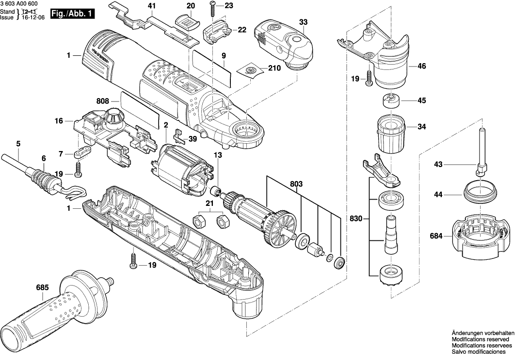 Here you will find all available parts and drawings of the 'Bosch 3603A00600 ( PMF250CES )'. From here you can order all desired parts directly. Many parts must be ordered from the manufacturer, depending on the brand, this takes one to four weeks. All the information we have is on our website, we cannot advise you on what you need, for that you will need to return the machine for repair. Please note the following when ordering: