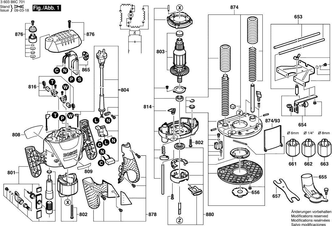 Here you will find all available parts and drawings of the 'Bosch 3603B6C701 ( POF1400ACE )'. From here you can order all desired parts directly. Many parts must be ordered from the manufacturer, depending on the brand, this takes one to four weeks. All the information we have is on our website, we cannot advise you on what you need, for that you will need to return the machine for repair. Please note the following when ordering: