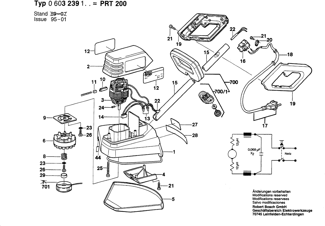 Here you will find all available parts and drawings of the 'Bosch 0603239103 ( PRT200 )'. From here you can order all desired parts directly. Many parts must be ordered from the manufacturer, depending on the brand, this takes one to four weeks. All the information we have is on our website, we cannot advise you on what you need, for that you will need to return the machine for repair. Please note the following when ordering: