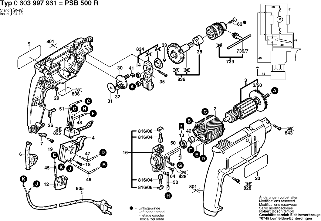Spare parts list of model Bosch 0603997961 ( PSB500R )