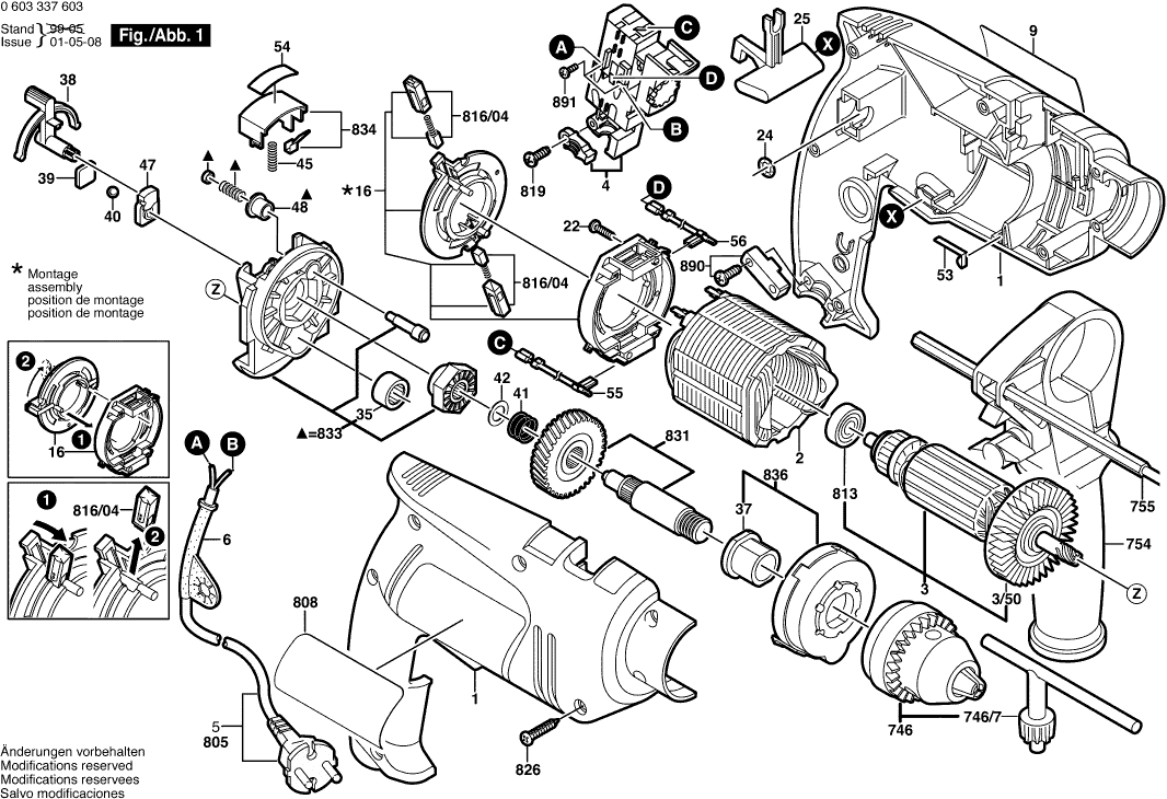 Spare parts list of model Bosch 0603337608 ( PSB500RE )