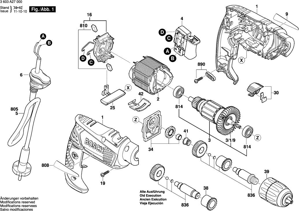 Spare parts list of model Bosch 3603A27006 ( PSB500RE )