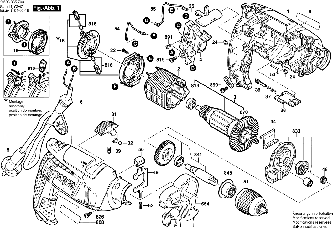 Spare parts list of model Bosch 0603385703 ( PSB650RA )