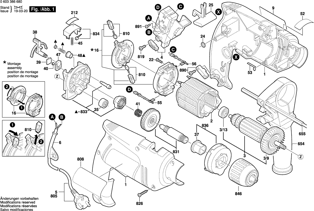 Spare parts list of model Bosch 0603386680 ( PSB650RE )