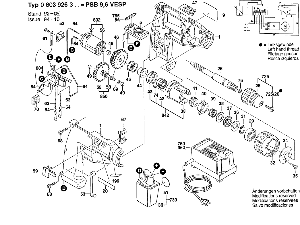 Spare parts list of model Bosch 0603926303 ( PSB9,6VESP )
