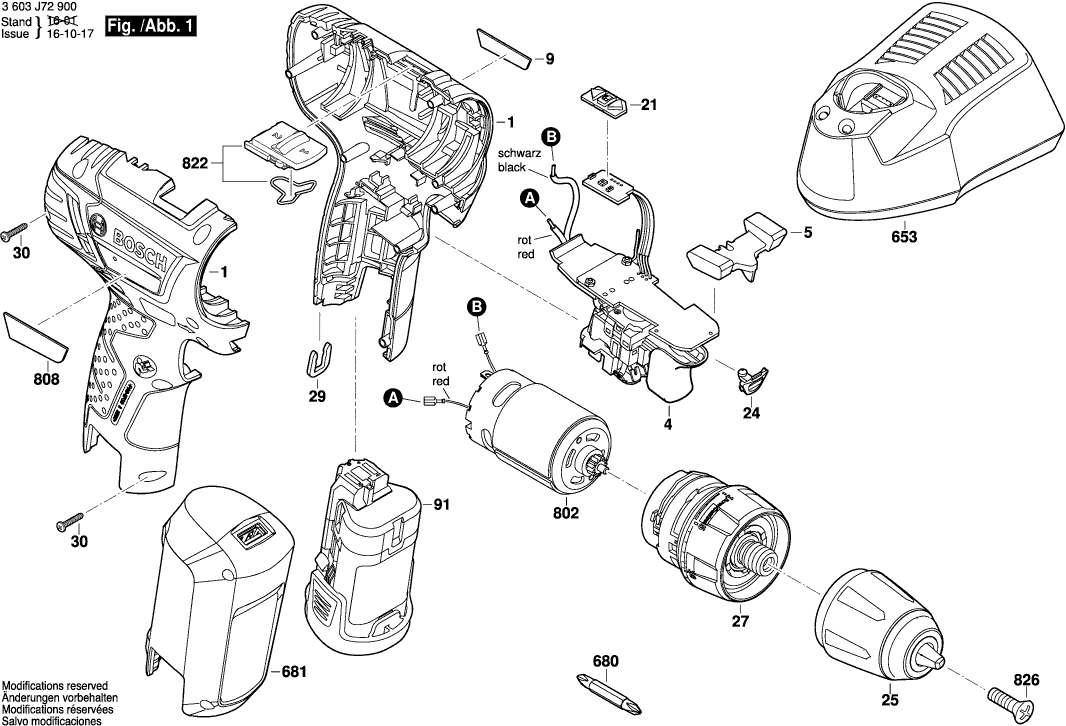 Spare parts list of model Bosch 3603J72902 ( PSR10,8LI-2 )
