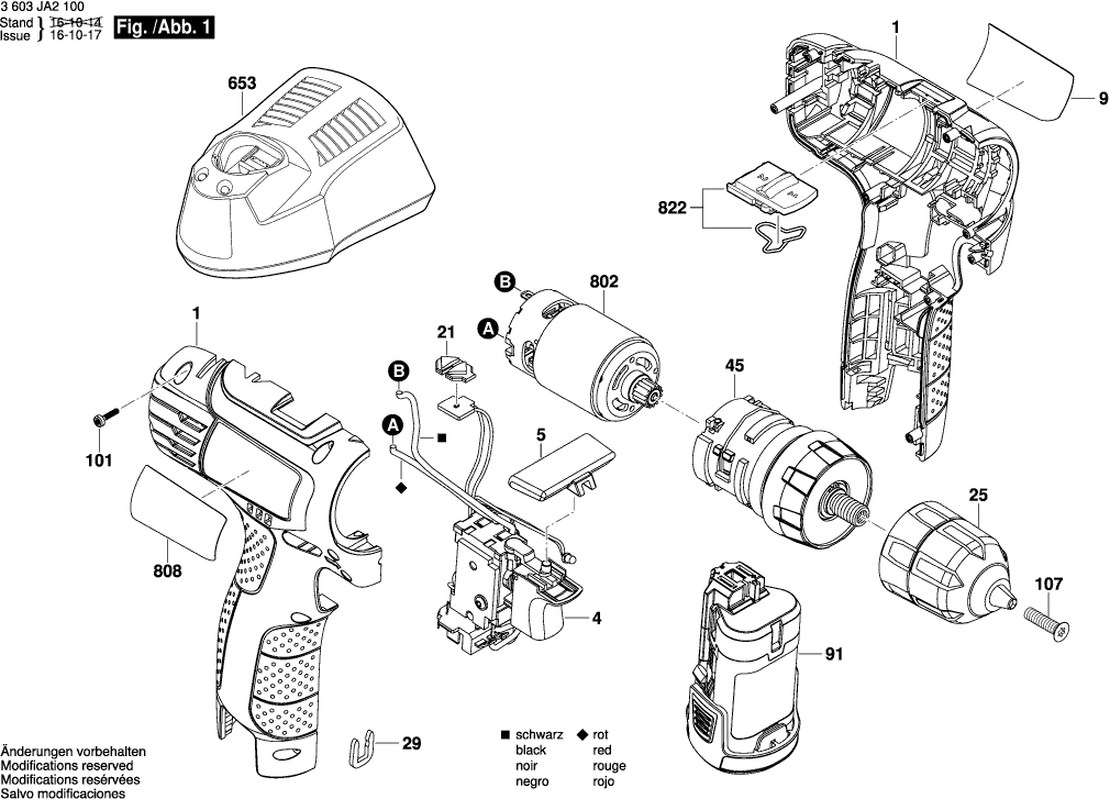 Spare parts list of model Bosch 3603JA2100 ( PSR1080LI )