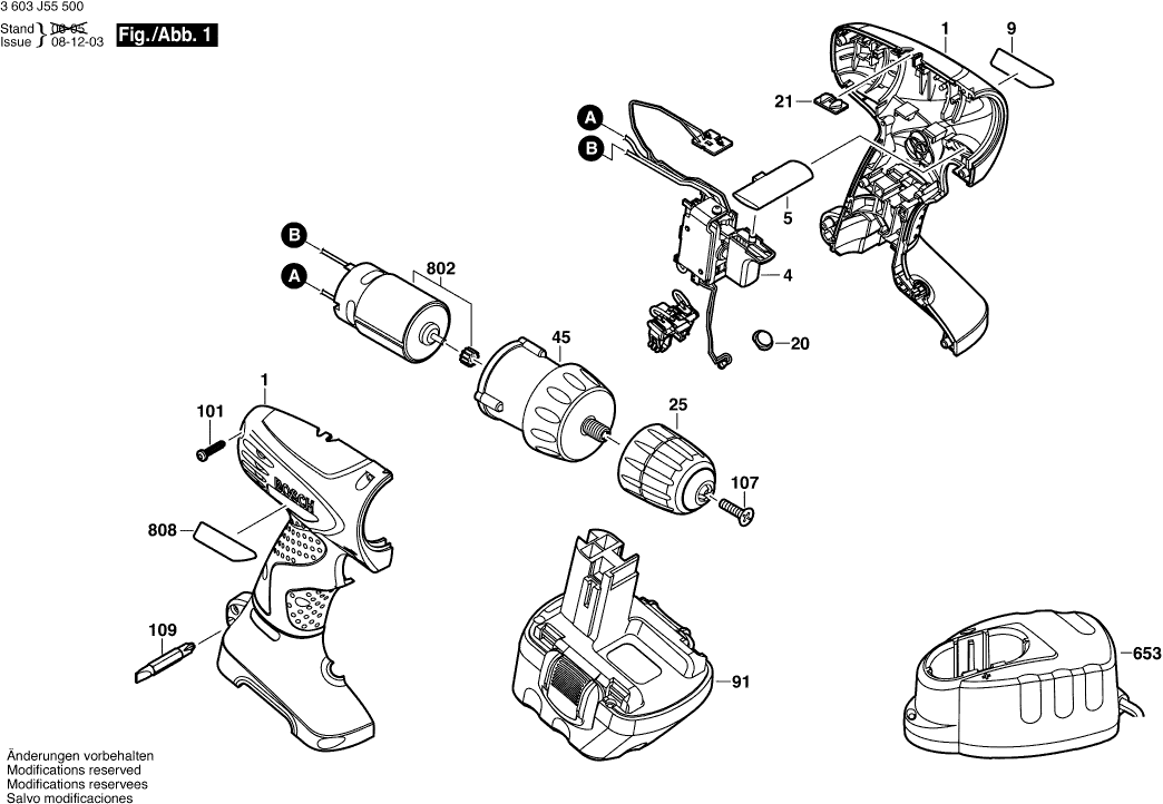 Spare parts list of model Bosch 3603J55500 ( PSR12 )