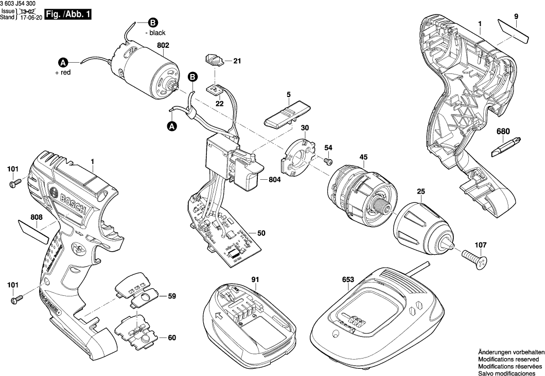 Spare parts list of model Bosch 3603J54300 ( PSR14,4LI )