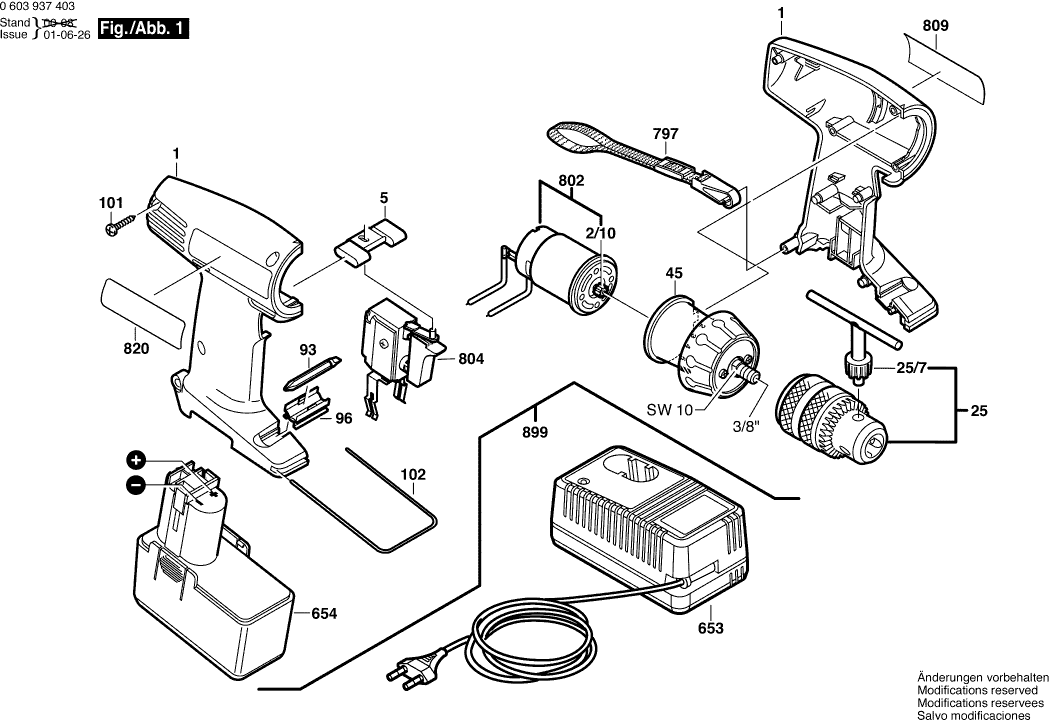 Spare parts list of model Bosch 0603937403 ( PSR14,4VE )
