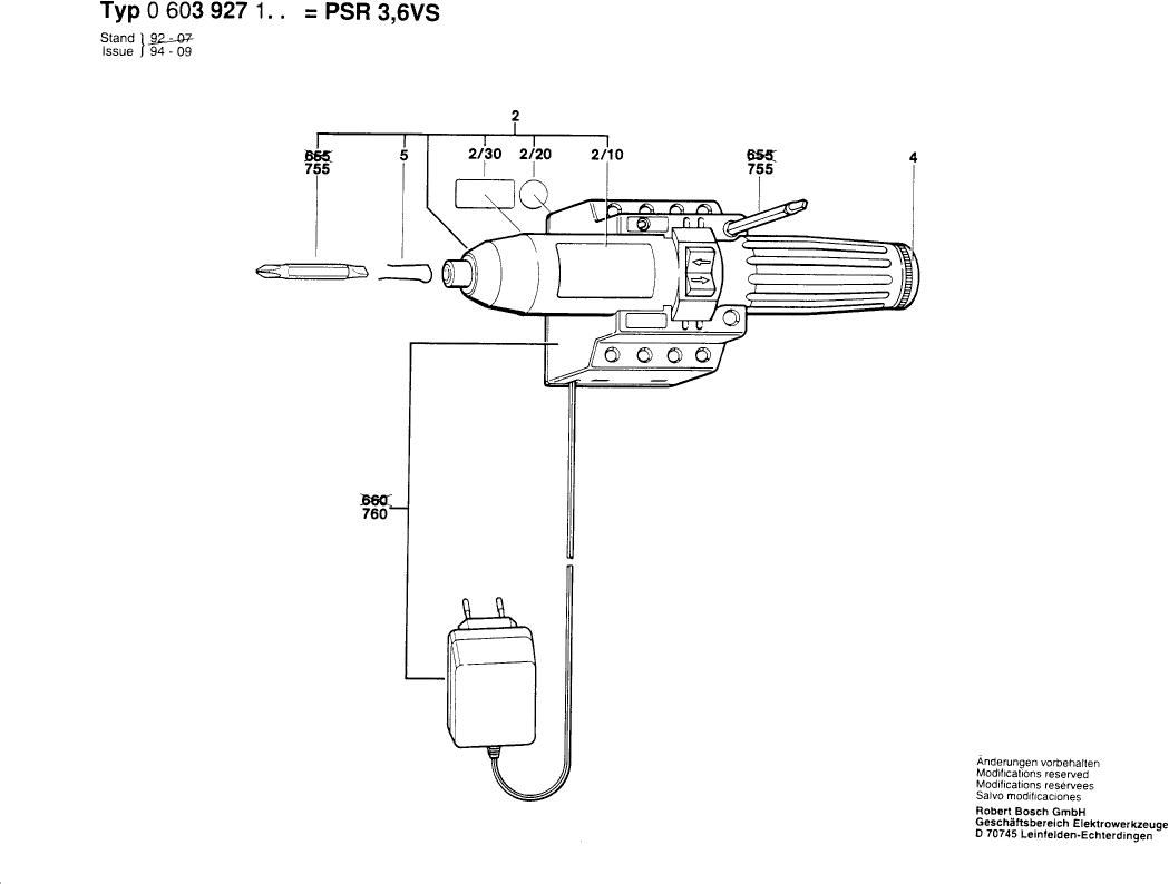 Technical drawing of model Bosch 0603927103 ( PSR3,6VS )