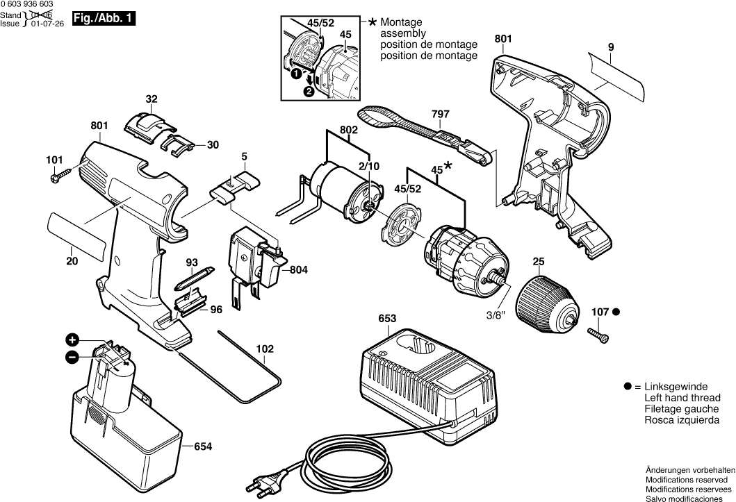Spare parts list of model Bosch 0603936603 ( PSR9,6VES-2 )