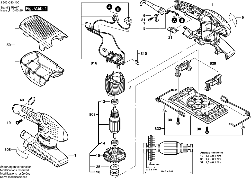 Technical drawing of model Bosch 3603C40100 ( PSS200AC )