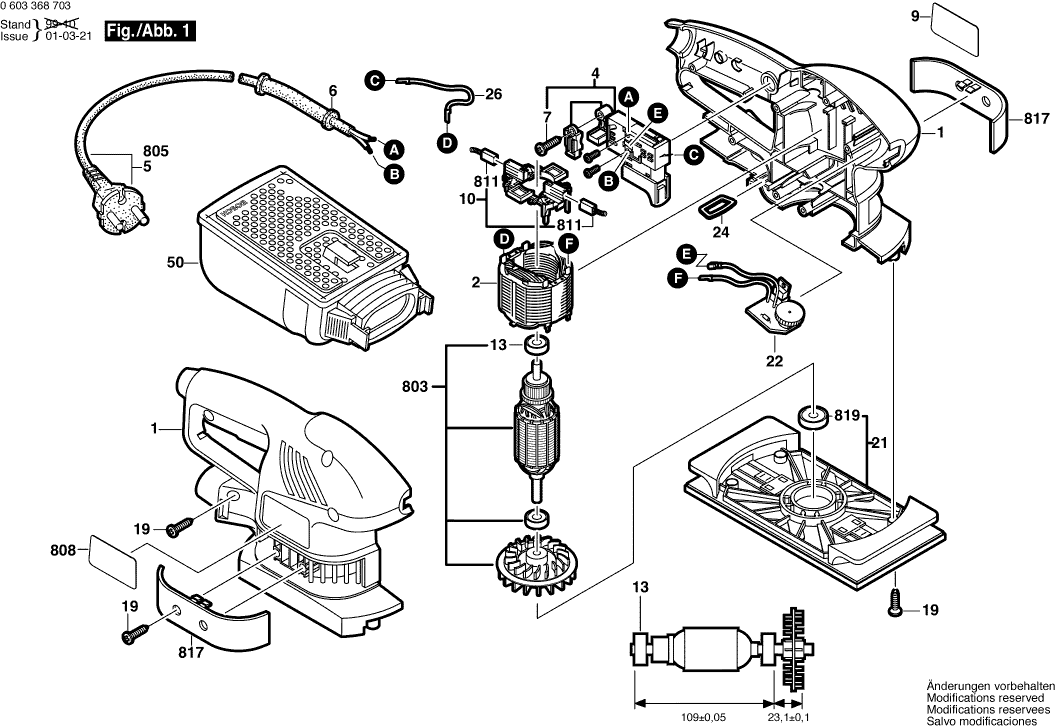 Technical drawing of model Bosch 0603368708 ( PSS240AE )