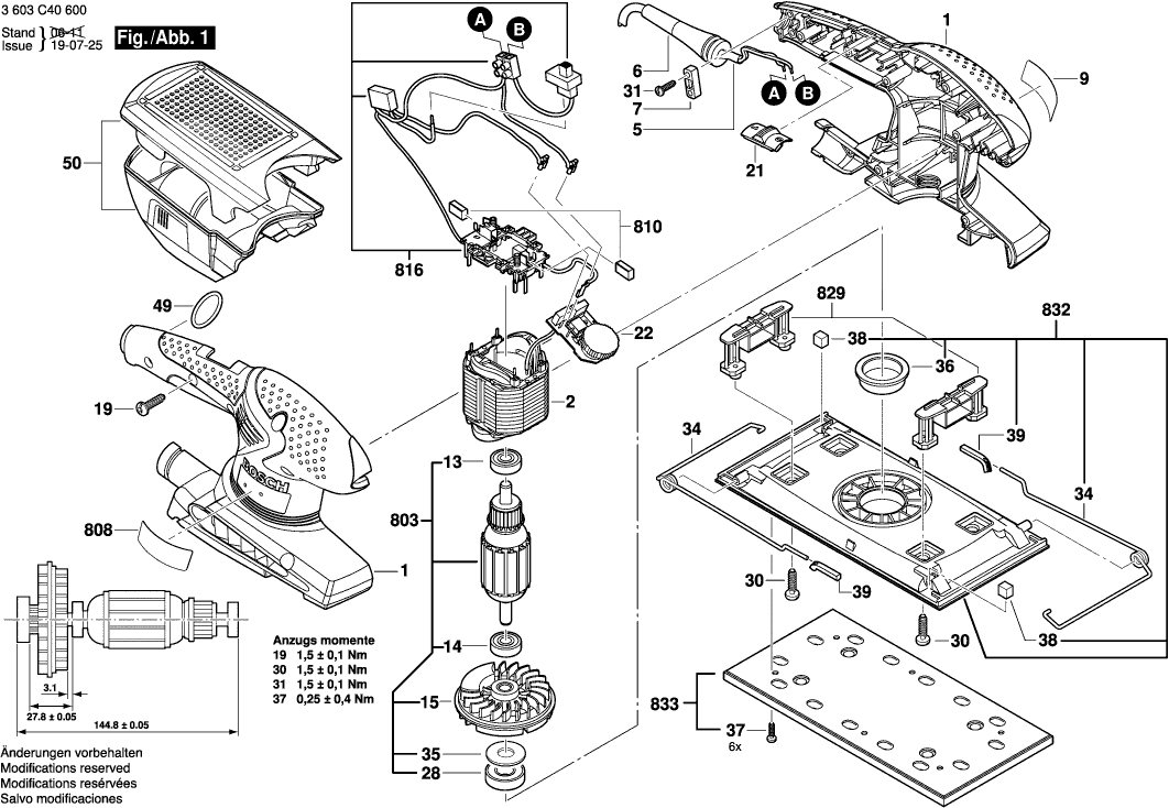 Spare parts list of model Bosch 3603C40600 ( PSS280A )
