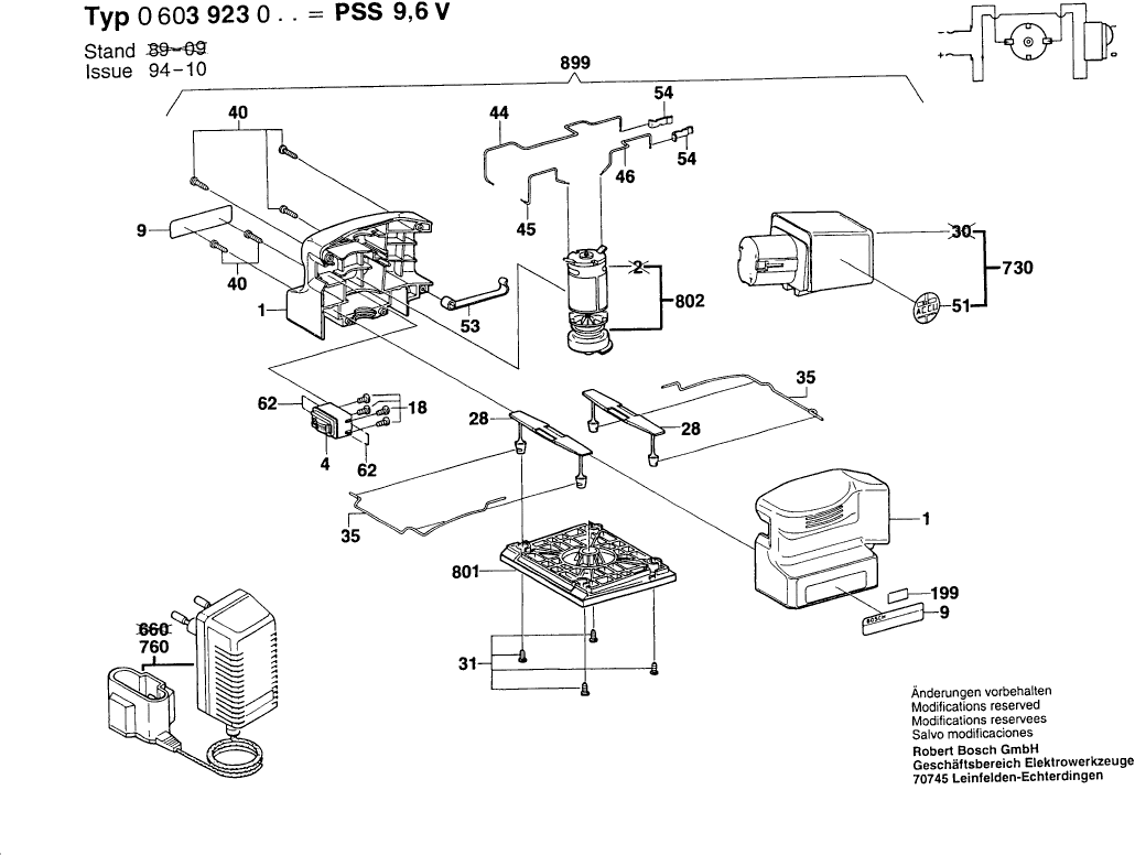 Spare parts list of model Bosch 0603923003 ( PSS9,6V )