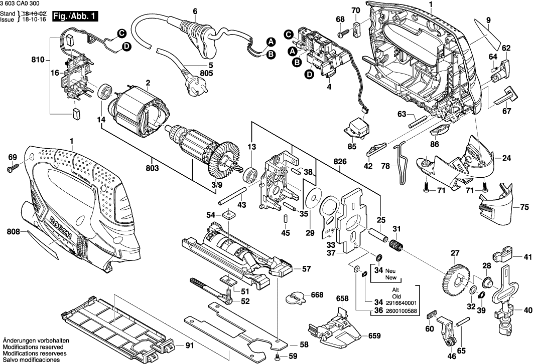 Technical drawing of model Bosch 3603CA0300 ( PST1000PEL )