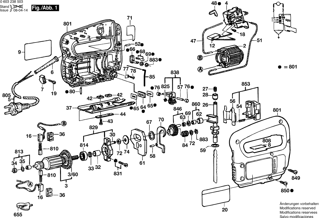 Technical drawing of model Bosch 0603238503 ( PST50PE )