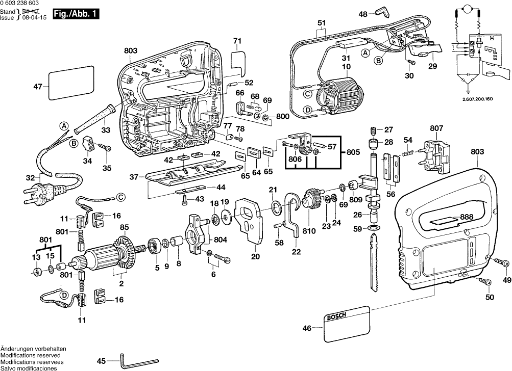 Here you will find all available parts and drawings of the 'Bosch 0603238603 ( PST50PE )'. From here you can order all desired parts directly. Many parts must be ordered from the manufacturer, depending on the brand, this takes one to four weeks. All the information we have is on our website, we cannot advise you on what you need, for that you will need to return the machine for repair. Please note the following when ordering:
