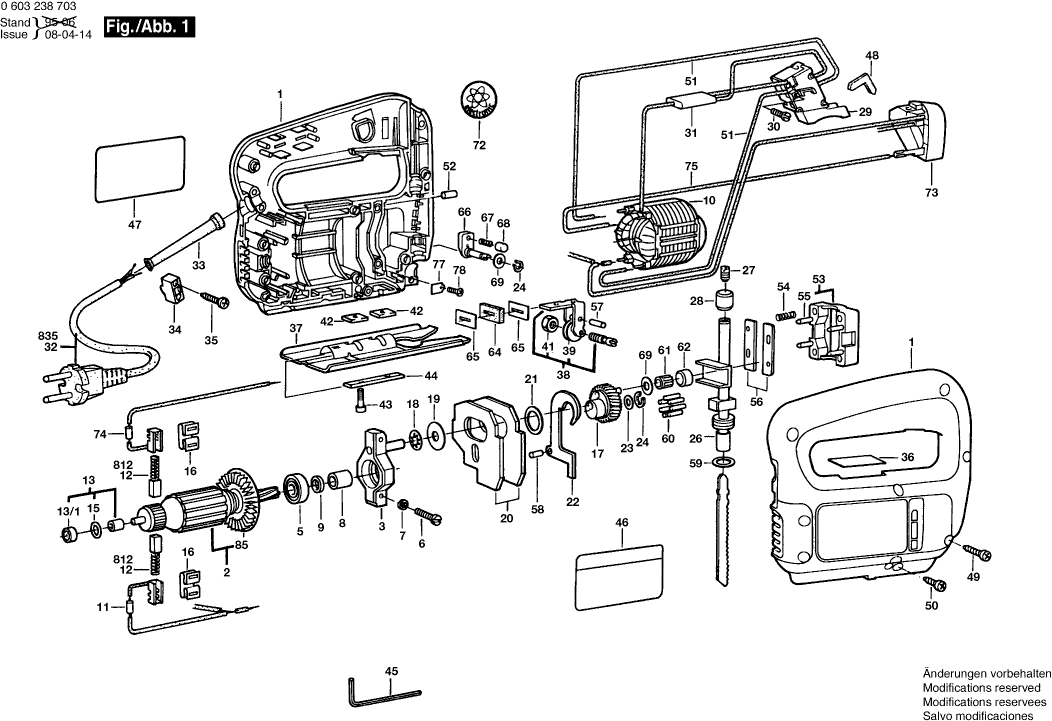 Here you will find all available parts and drawings of the 'Bosch 0603238703 ( PST55PE )'. From here you can order all desired parts directly. Many parts must be ordered from the manufacturer, depending on the brand, this takes one to four weeks. All the information we have is on our website, we cannot advise you on what you need, for that you will need to return the machine for repair. Please note the following when ordering: