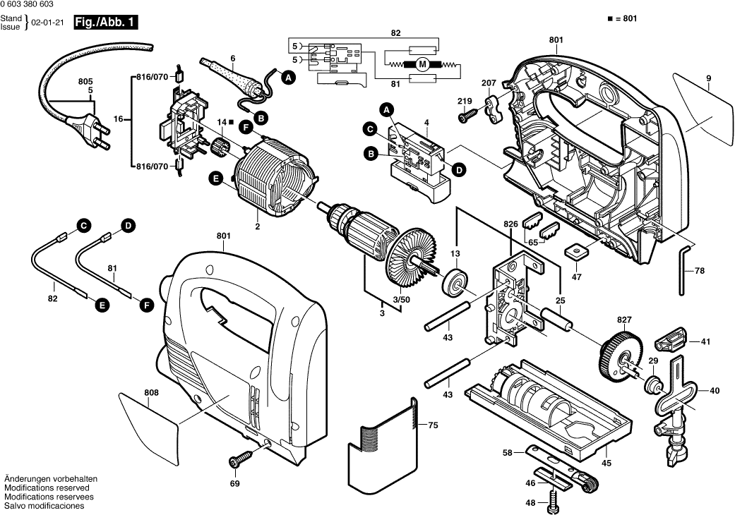 Spare parts list of model Bosch 0603380608 ( PST650E )