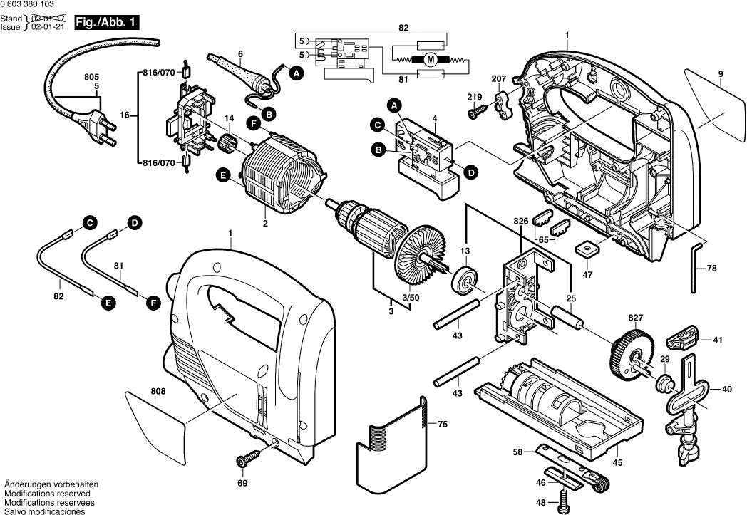 Spare parts list of model Bosch 0603380108 ( PST650 )