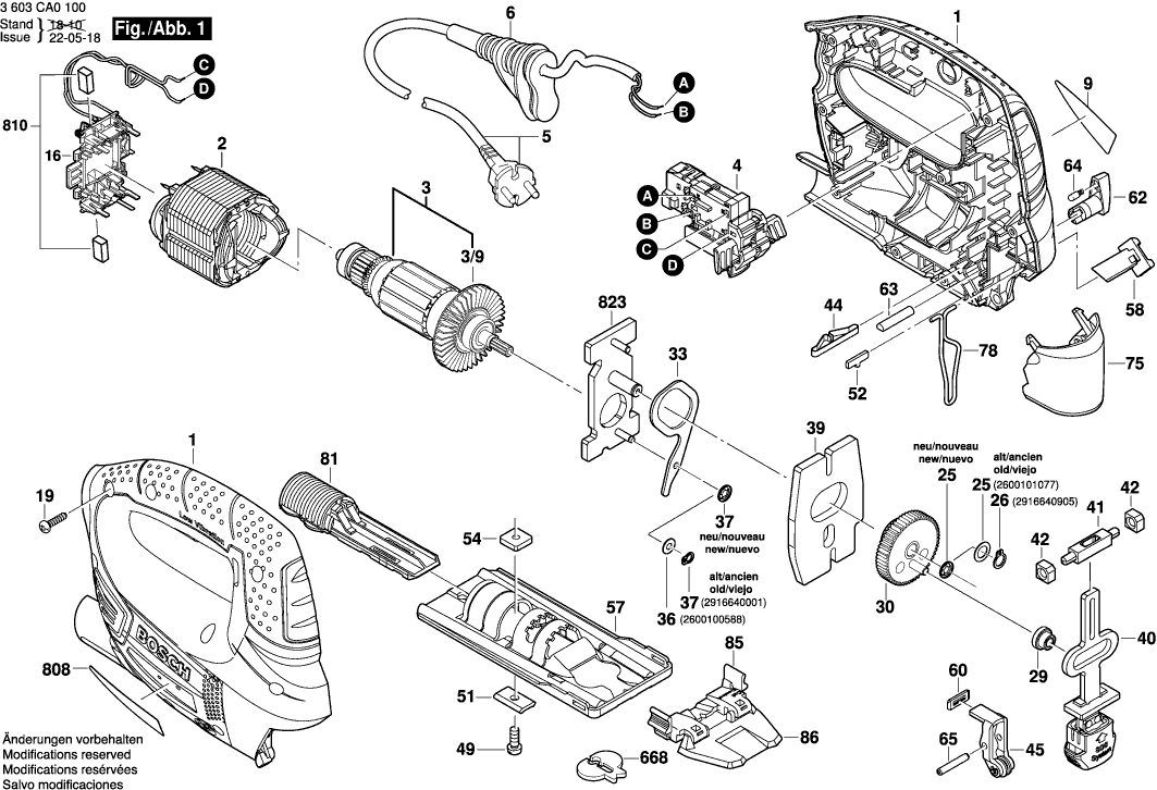 Here you will find all available parts and drawings of the 'Bosch 3603CA0171 ( PST800PEL )'. From here you can order all desired parts directly. Many parts must be ordered from the manufacturer, depending on the brand, this takes one to four weeks. All the information we have is on our website, we cannot advise you on what you need, for that you will need to return the machine for repair. Please note the following when ordering: