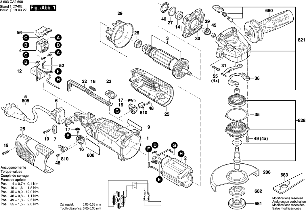 Here you will find all available parts and drawings of the 'Bosch 3603CA2600 ( PWS1000-125 )'. From here you can order all desired parts directly. Many parts must be ordered from the manufacturer, depending on the brand, this takes one to four weeks. All the information we have is on our website, we cannot advise you on what you need, for that you will need to return the machine for repair. Please note the following when ordering:
