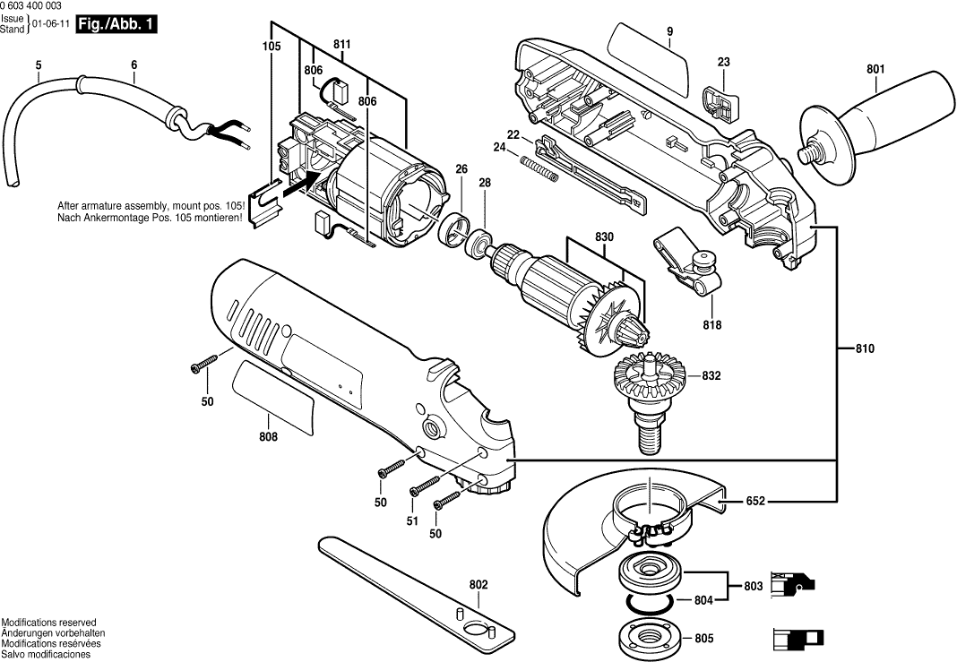 Spare parts list of model Bosch 0603400008 ( PWS600 )