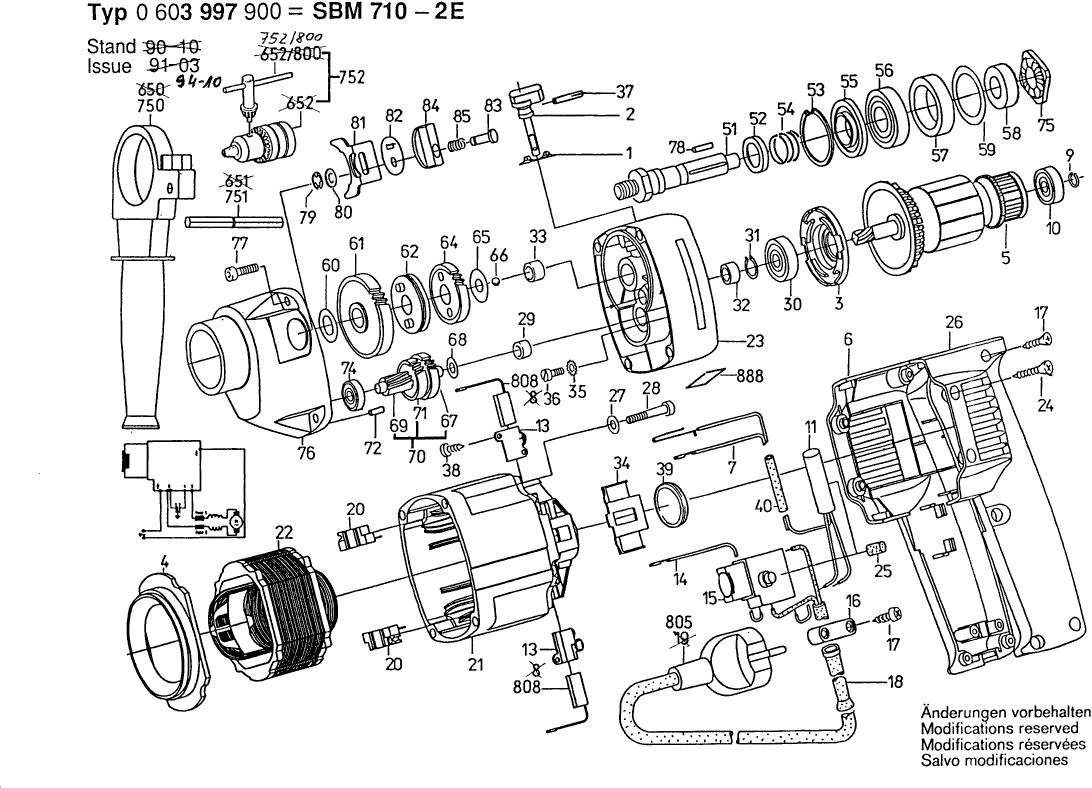 Spare parts list of model Bosch 0603997900 ( SBM710-2E )