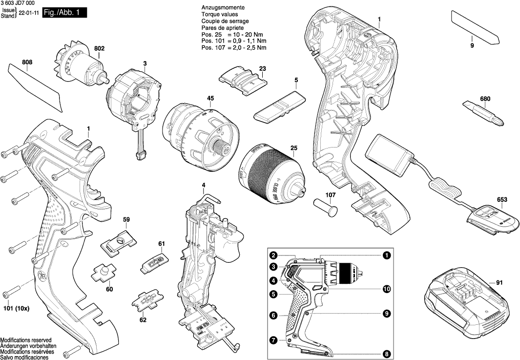 Technical drawing of model Bosch 3603JD7000 ( UNIVERSALDRILL18V-60 )