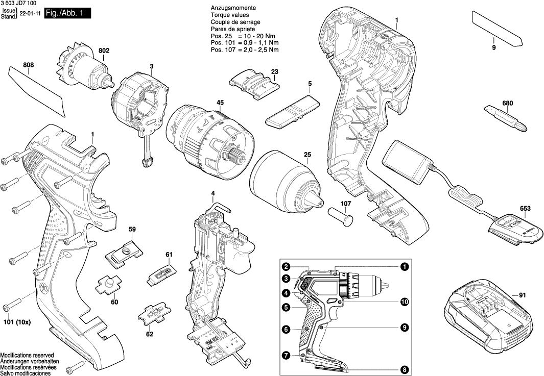 Technical drawing of model Bosch 3603JD7100 ( UNIVERSALIMPACT18V-60 )