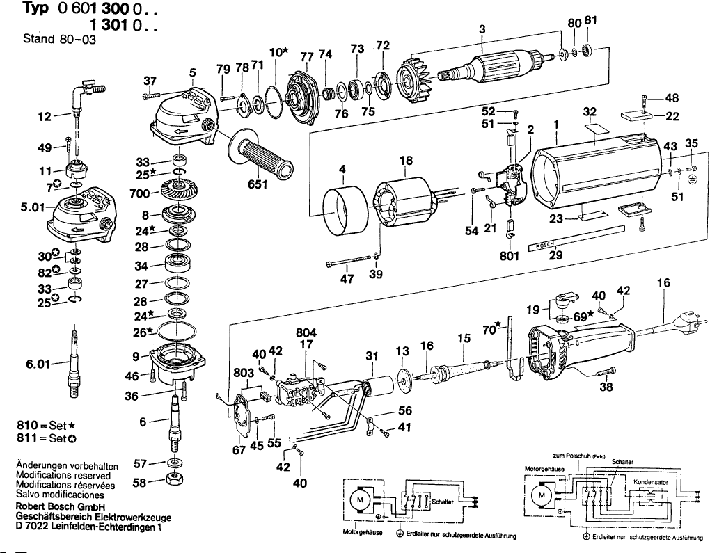 Spare parts list of model Bosch 0601300003 ( USW(J)77 )
