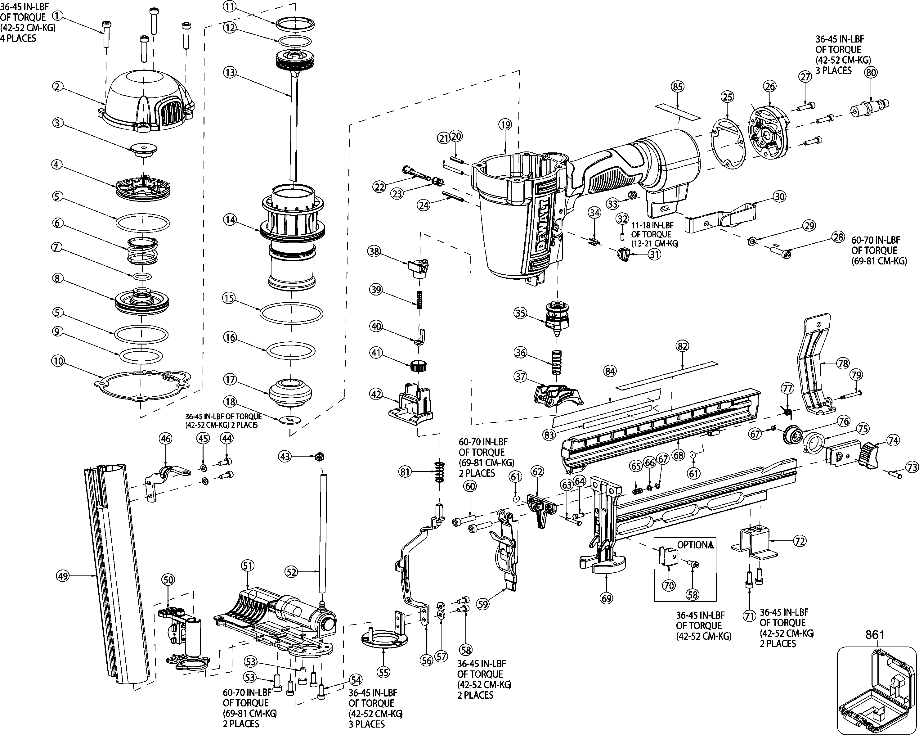 Here you will find all available parts and drawings of the 'Dewalt DWSL18CAP'. From here you can order all desired parts directly. Many parts must be ordered from the manufacturer, depending on the brand, this takes one to four weeks. All the information we have is on our website, we cannot advise you on what you need, for that you will need to return the machine for repair. Please note the following when ordering: