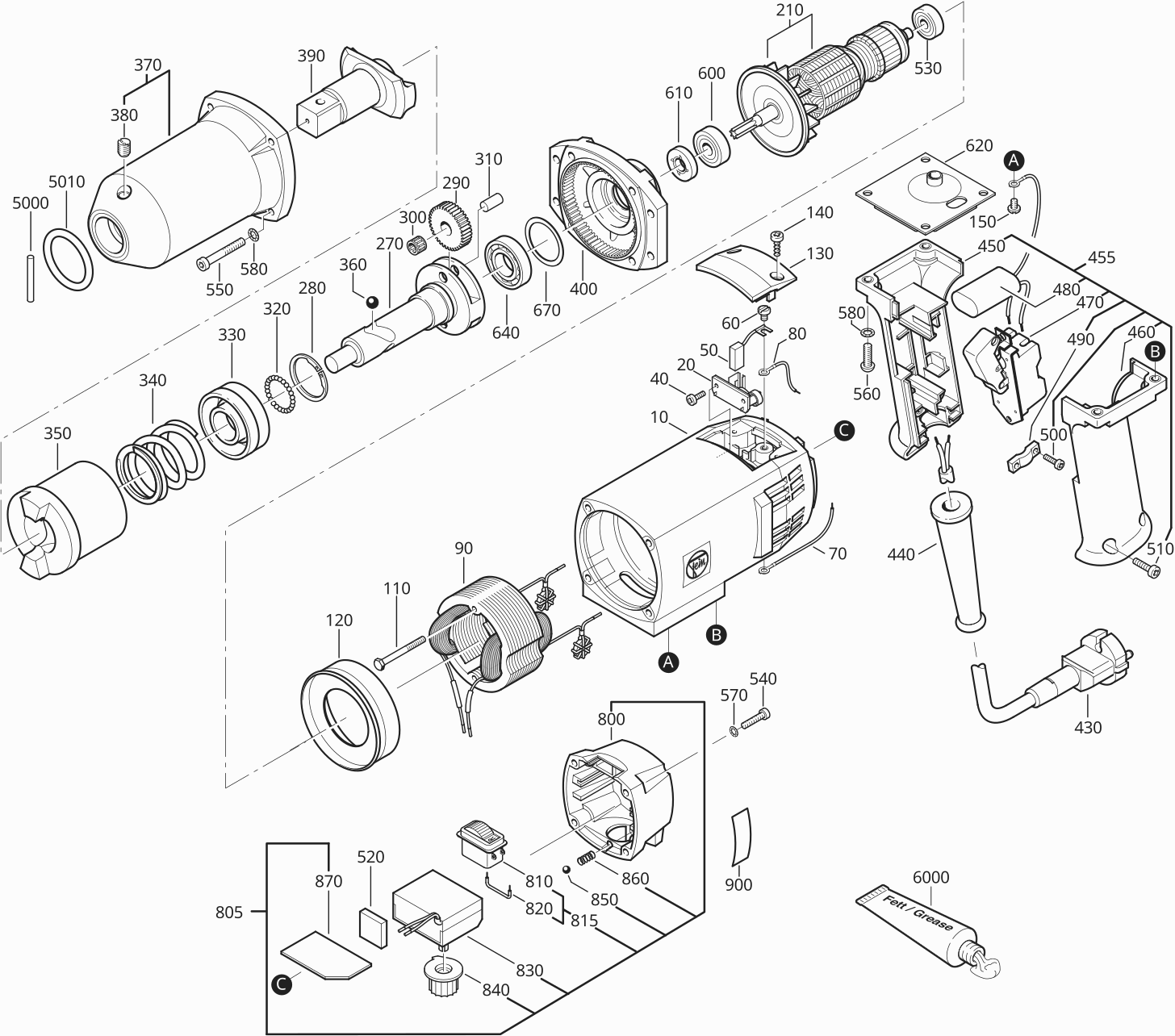 Here you will find all available parts and drawings of the 'Fein 72151300228 ( ASBE647-1 )'. From here you can order all desired parts directly. Many parts must be ordered from the manufacturer, depending on the brand, this takes one to four weeks. All the information we have is on our website, we cannot advise you on what you need, for that you will need to return the machine for repair. Please note the following when ordering: