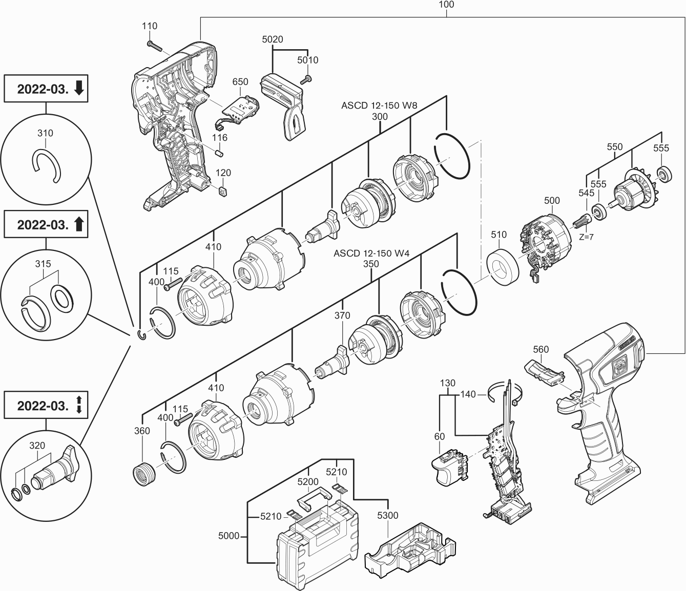 Spare parts list of model Fein 71150500920 ( ASCD12-150W4 )