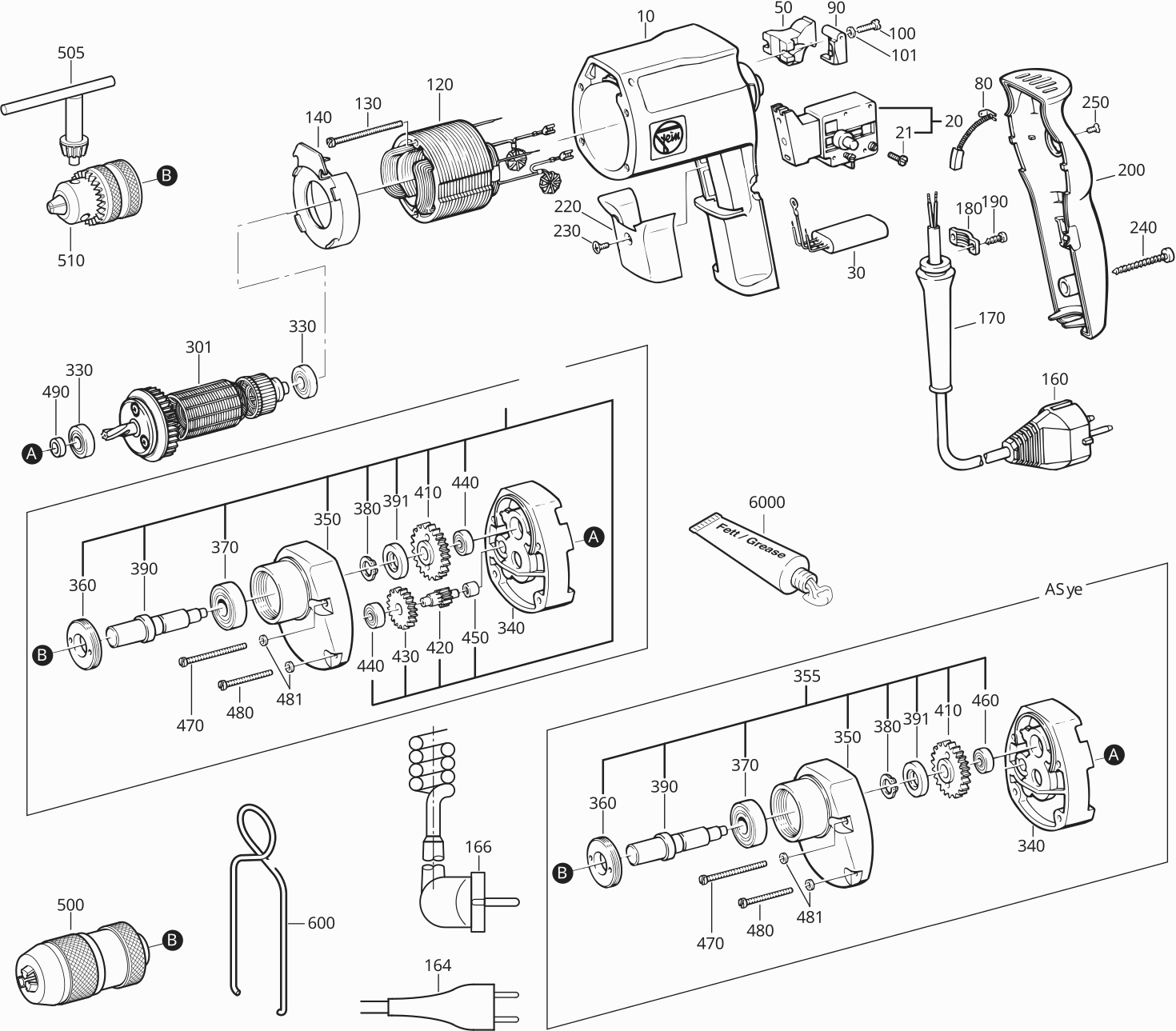 Here you will find all available parts and drawings of the 'Fein 72016300620 ( ASye636 )'. From here you can order all desired parts directly. Many parts must be ordered from the manufacturer, depending on the brand, this takes one to four weeks. All the information we have is on our website, we cannot advise you on what you need, for that you will need to return the machine for repair. Please note the following when ordering: