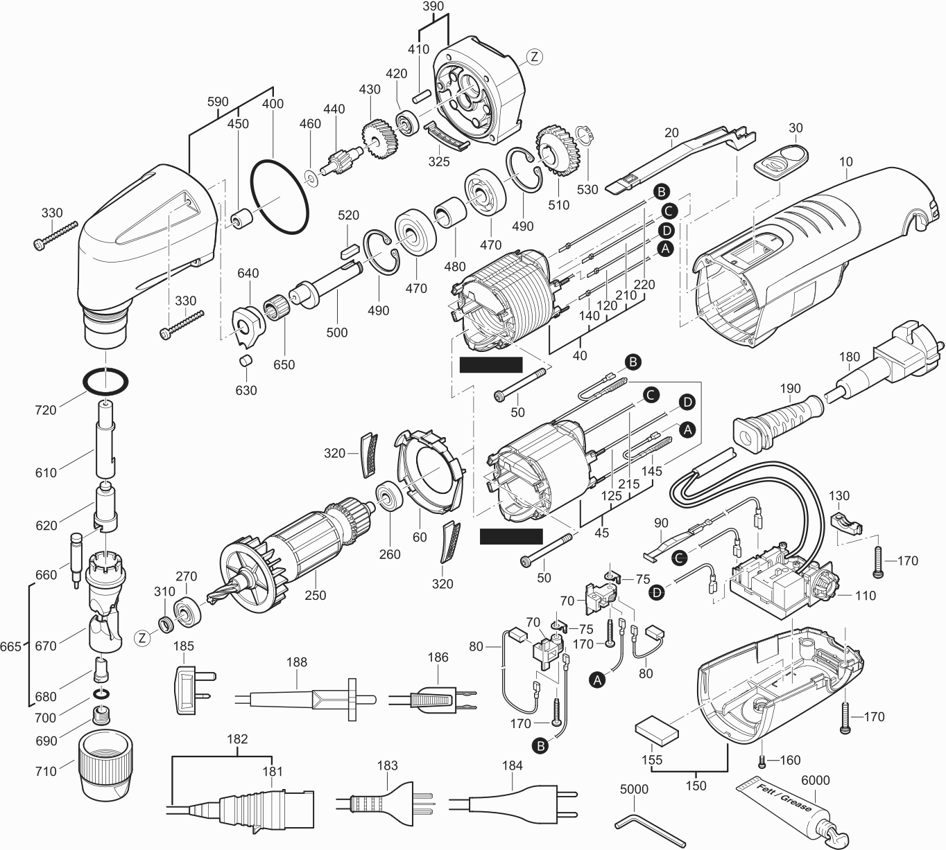 Here you will find all available parts and drawings of the 'Fein 72323800230 ( BLK1.6E )'. From here you can order all desired parts directly. Many parts must be ordered from the manufacturer, depending on the brand, this takes one to four weeks. All the information we have is on our website, we cannot advise you on what you need, for that you will need to return the machine for repair. Please note the following when ordering: