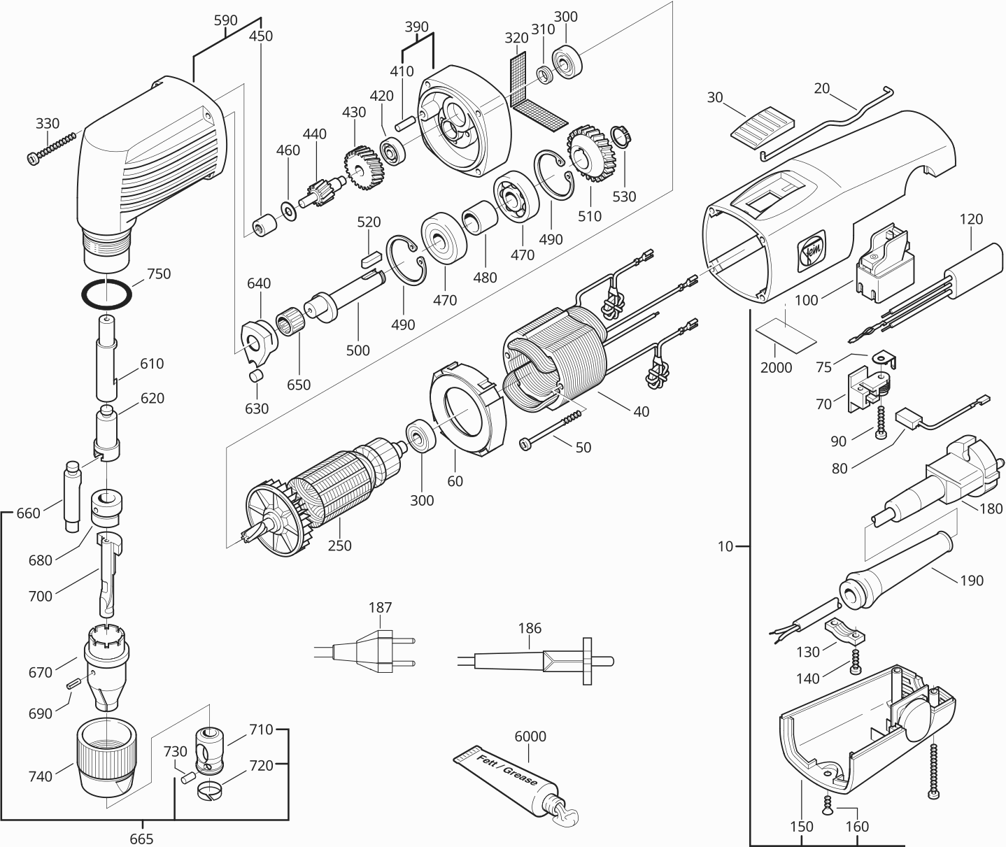Here you will find all available parts and drawings of the 'Fein 72322900233 ( BLK2.0 )'. From here you can order all desired parts directly. Many parts must be ordered from the manufacturer, depending on the brand, this takes one to four weeks. All the information we have is on our website, we cannot advise you on what you need, for that you will need to return the machine for repair. Please note the following when ordering: