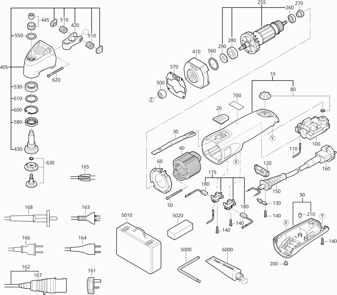 Here you will find all available parts and drawings of the 'Fein 72363200234 ( FSC2.0 )'. From here you can order all desired parts directly. Many parts must be ordered from the manufacturer, depending on the brand, this takes one to four weeks. All the information we have is on our website, we cannot advise you on what you need, for that you will need to return the machine for repair. Please note the following when ordering: