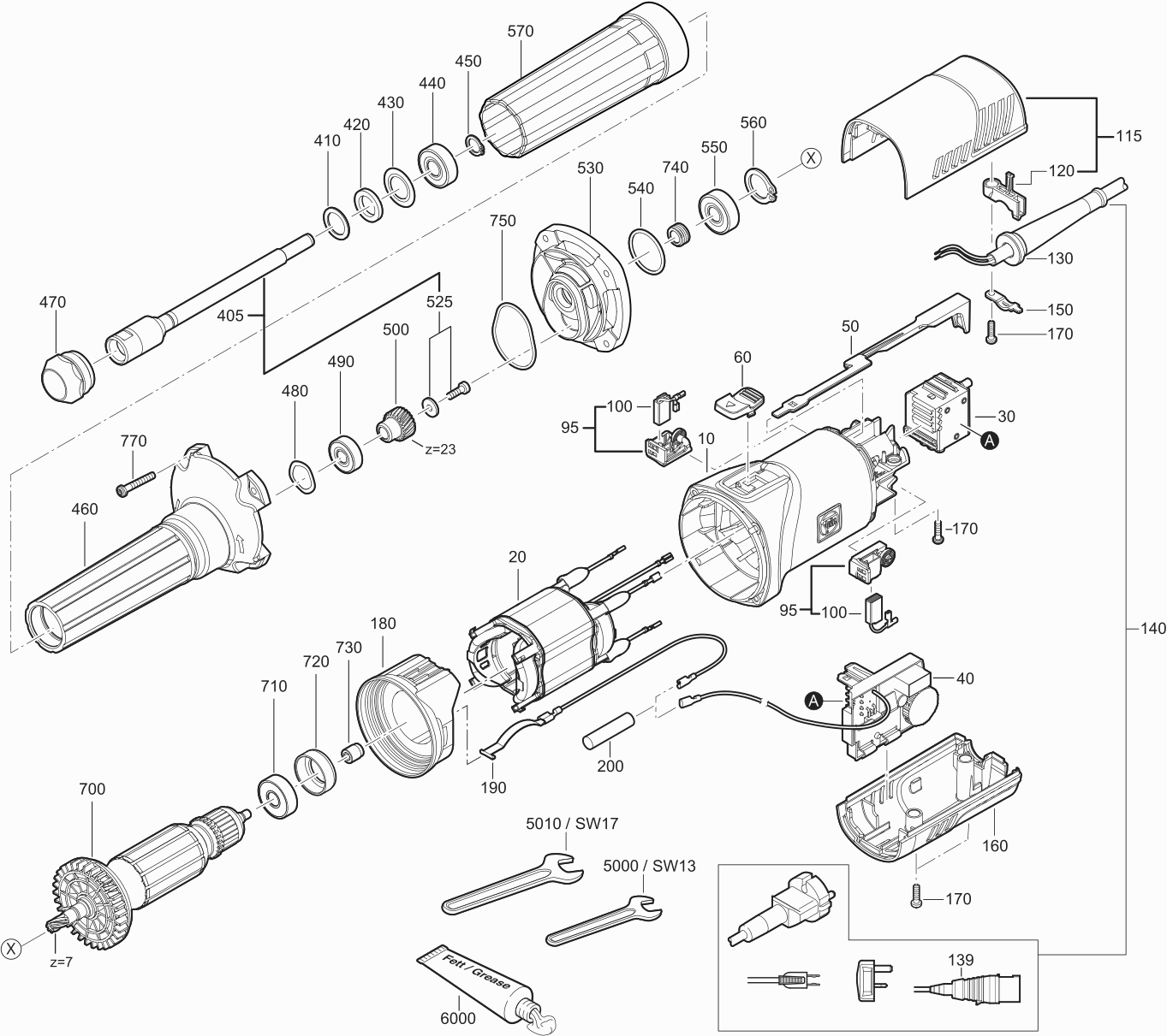 Spare parts list of model Fein 72232000230 ( GSZ8-90PEL )