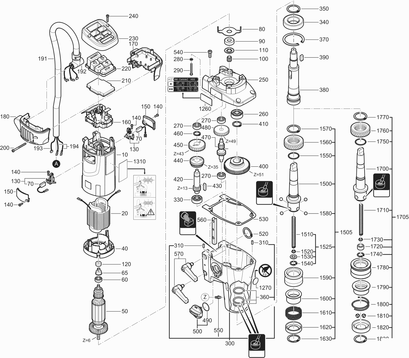Spare parts list of model Fein 72730400230 ( KBM50U )