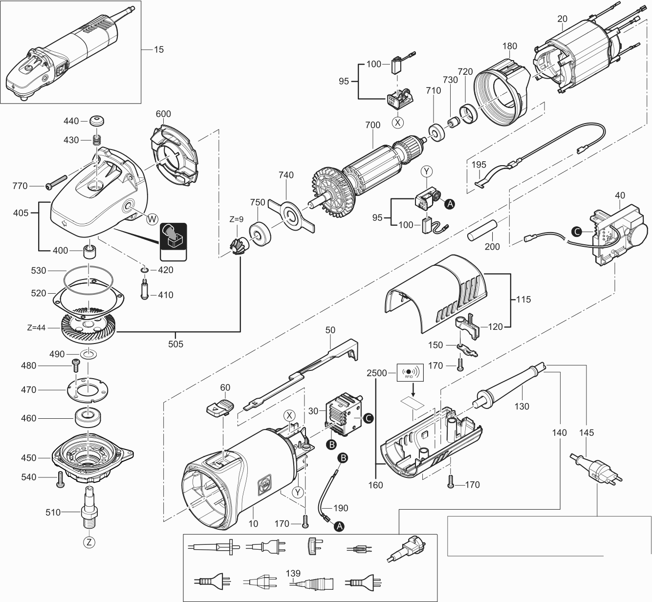 Spare parts list of model Fein 72227500230 ( RS17-70E )