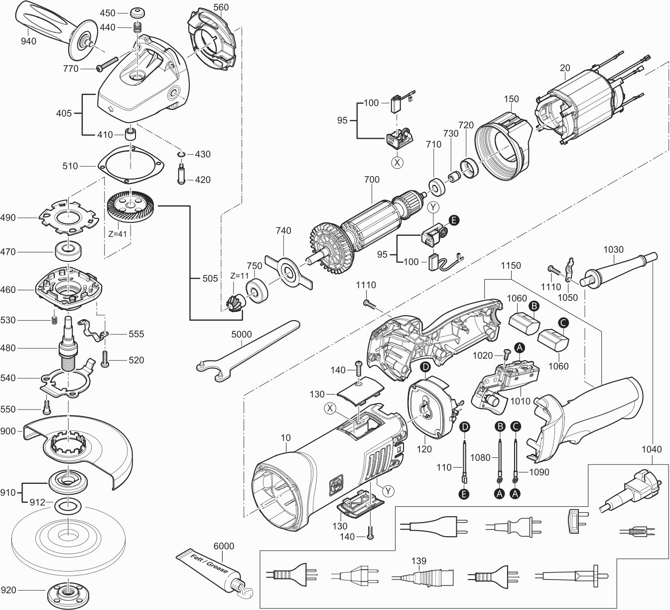 Here you will find all available parts and drawings of the 'Fein 72218600230 ( WSG11-125R )'. From here you can order all desired parts directly. Many parts must be ordered from the manufacturer, depending on the brand, this takes one to four weeks. All the information we have is on our website, we cannot advise you on what you need, for that you will need to return the machine for repair. Please note the following when ordering: