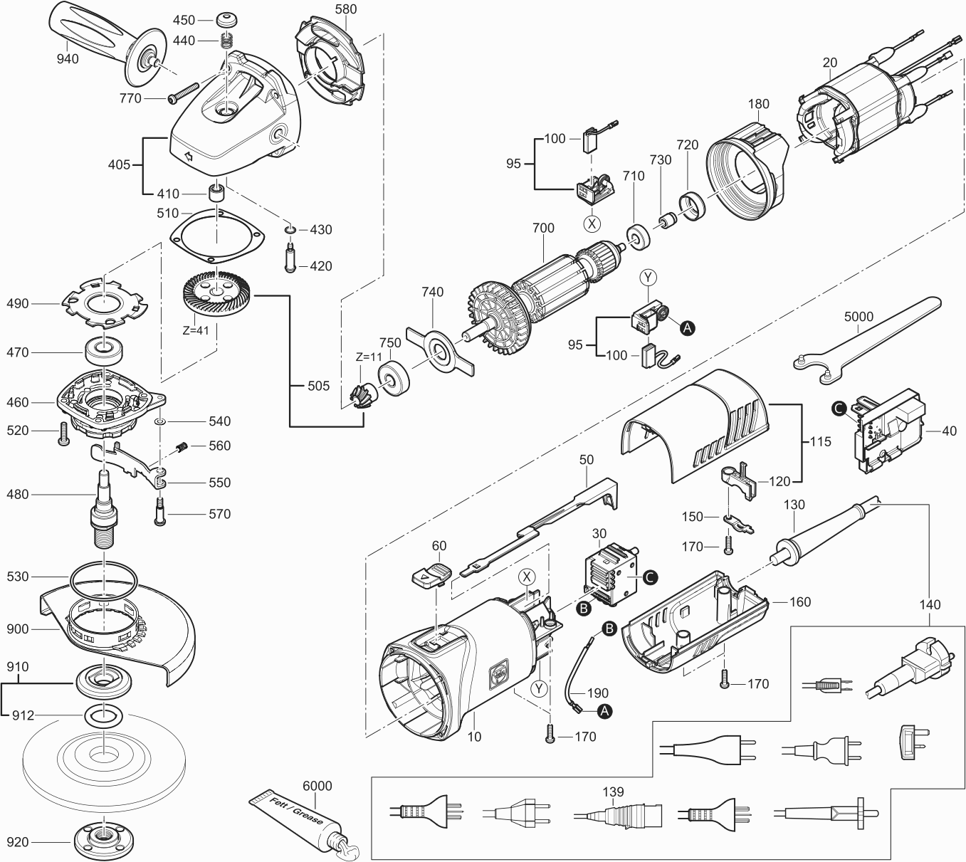 Spare parts list of model Fein 72220500230 ( WSG12-125 )
