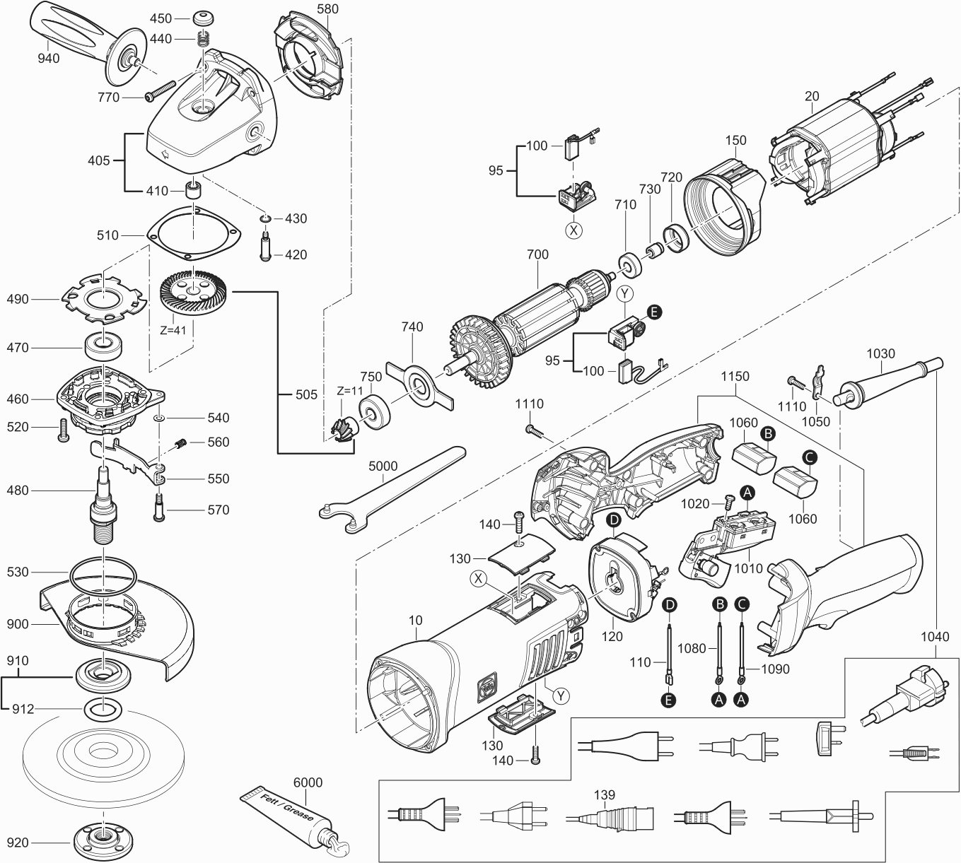 Spare parts list of model Fein 72221900230 ( WSG17-125PRT )