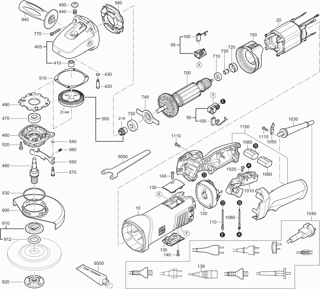 Here you will find all available parts and drawings of the 'Fein 72222200230 ( WSG17-70InoxR )'. From here you can order all desired parts directly. Many parts must be ordered from the manufacturer, depending on the brand, this takes one to four weeks. All the information we have is on our website, we cannot advise you on what you need, for that you will need to return the machine for repair. Please note the following when ordering: