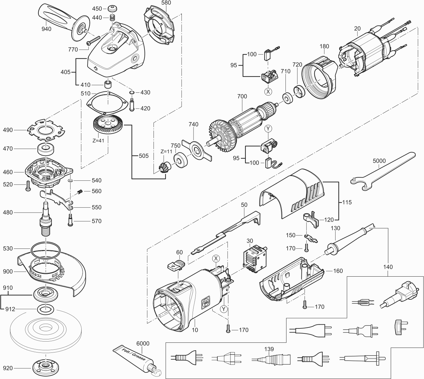 Here you will find all available parts and drawings of the 'Fein 72220200230 ( WSG8-12 )'. From here you can order all desired parts directly. Many parts must be ordered from the manufacturer, depending on the brand, this takes one to four weeks. All the information we have is on our website, we cannot advise you on what you need, for that you will need to return the machine for repair. Please note the following when ordering: