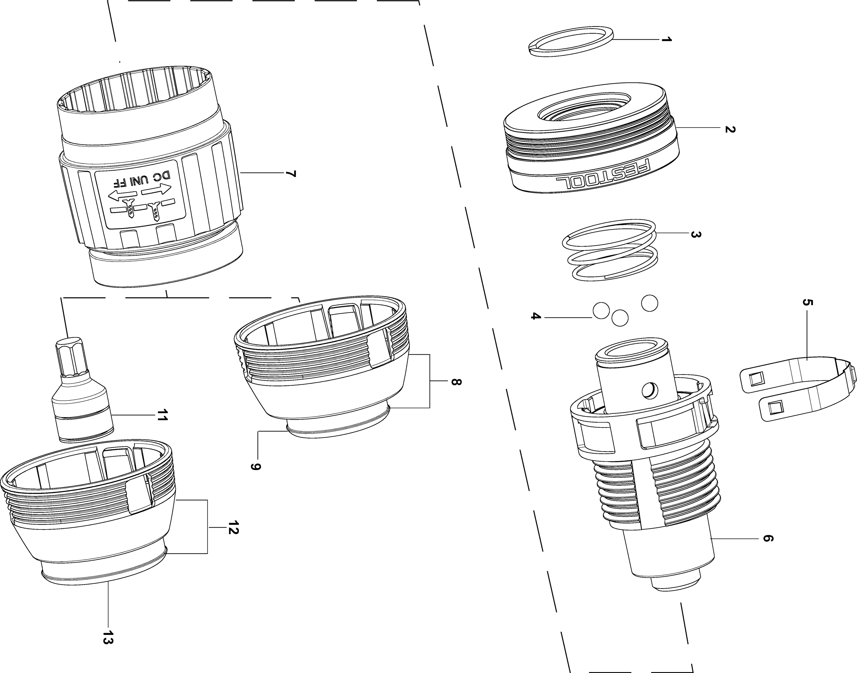Here you will find all available parts and drawings of the 'Festool 768171 ( DCUNIFF )'. From here you can order all desired parts directly. Many parts must be ordered from the manufacturer, depending on the brand, this takes one to four weeks. All the information we have is on our website, we cannot advise you on what you need, for that you will need to return the machine for repair. Please note the following when ordering: