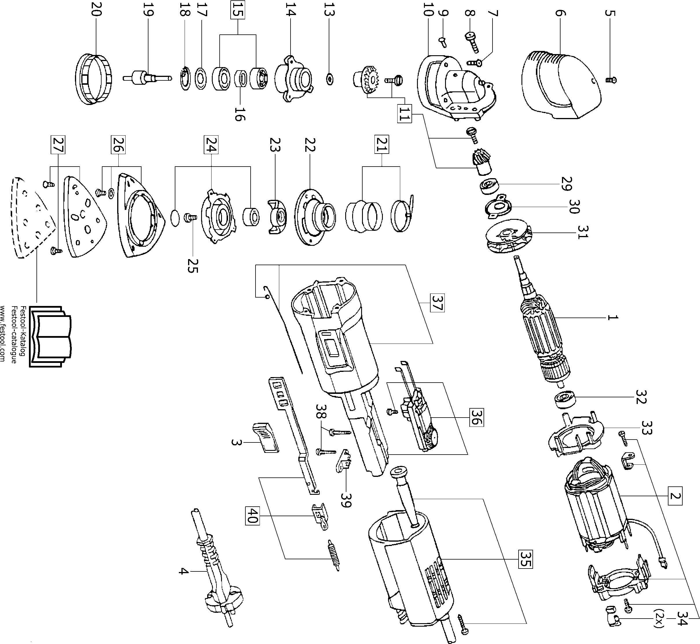 Here you will find all available parts and drawings of the 'Festool 489918 ( DX93E )'. From here you can order all desired parts directly. Many parts must be ordered from the manufacturer, depending on the brand, this takes one to four weeks. All the information we have is on our website, we cannot advise you on what you need, for that you will need to return the machine for repair. Please note the following when ordering: